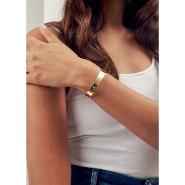 Dieser schlichte Armreif vereint Qualität mit zeitloser Eleganz. Er wird von Hand aus geprüftem 925er Silber gefertigt und edel vergoldet. Der Schnappverschluss garantiert Ihnen eine einfache Handhabung und hochwertigen Komfort. Trotz glänzender, goldener Oberfläche ist der Armreif dezent gehalten – und deswegen vielseitig kombinierbar.