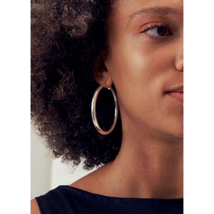 Grosse Creolen aus 925er Silber. Glatt und hochglanzpoliert – ein zeitloser Hingucker.