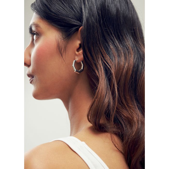 Diese Creolen werden aus geprüftem 925er Silber handgefertigt. Sie sind dezent und aussergewöhnlich zugleich. Sind Sie minimalistisch, aber sehnen sich nach einem Hauch Extravaganz? Die oktogonale Form wirkt stilvoll und organisch – und verleiht Ihnen das gewisse geometrische Etwas.